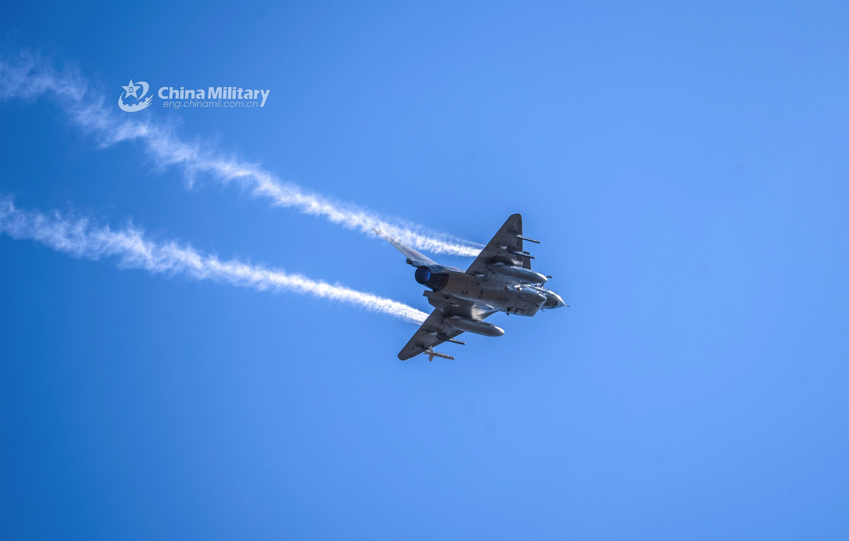 A fighter jet attached to an aviation brigade of the air force under the PLA Eastern Theater Command soars in the sky during a round-the-clock flight training exercise in mid January, 2021. (eng.chinamil.com.cn/Photo byTian Jianmin)
