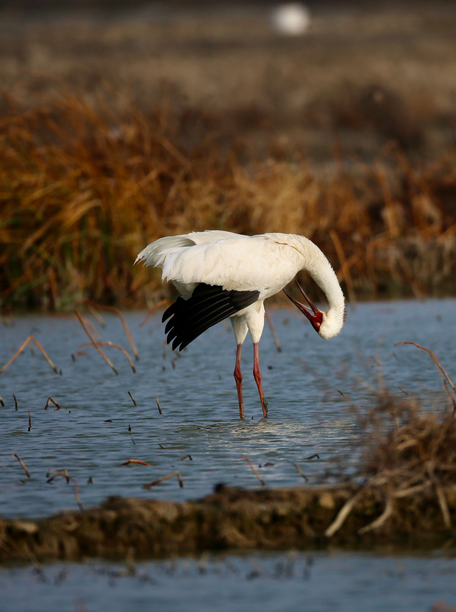 A white crane forages in shoals in Shishi Wetland Park, Quanzhou, southeast China's Fujian Province. (People's daily Online/ Tian Mi)