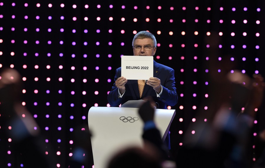 International Olympic Committee (IOC) president Thomas Bach announces that Beijing won the bid to host the 2022 Olympic Winter Games at the 128th International Olympic Committee session in Kuala Lumpur, Malaysia, July 31, 2015.(Xinhua/Gong Lei)