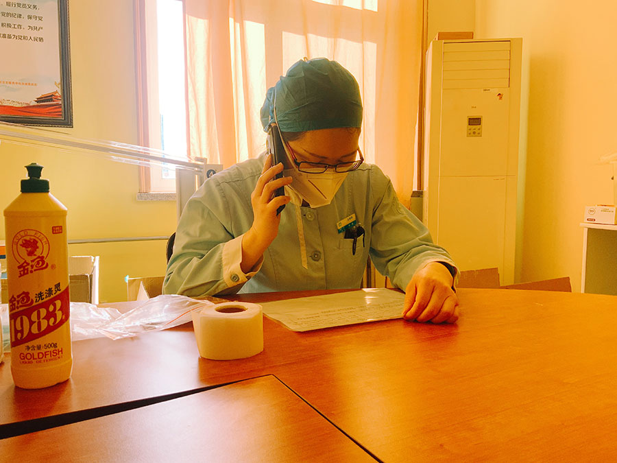 Most of the time, Wang and her partner are expected to visit three to seven patients in quarantine in the morning. She must avoid drinking water or eating food before finishing the work, as the heavy workload and the inconvenience of taking on and off the protective gears means that she cannot go to the toilet the whole morning.
