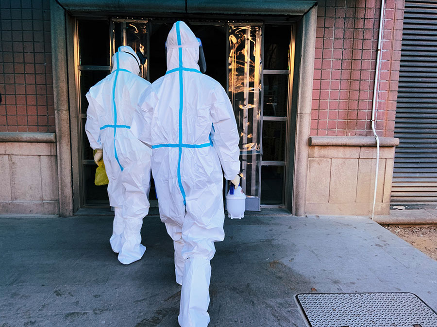 When changing protective gears outside the residential building, a little boy riding a toy tricycle came closer to Wang, observing them with curiosity. “You two are angels in white, aren’t you?” asked the boy.