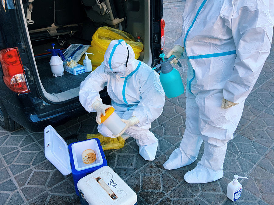 According to Wang’s work plan, this morning she was expected to visit three families who are in quarantine, offering them throat and anal swabs, as well as collecting samples from their home to determine if they are infected with COVID-19.