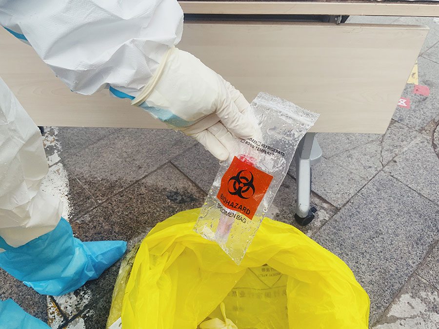 “The job of collecting COVID-19 test samples is quite complicated. We need to verify and register the patients personal information, communicate with the patients and their family, as well as collect samples and send samples back to the labs. We must be very careful, careless actions may result in severe consequences,” said Wang.