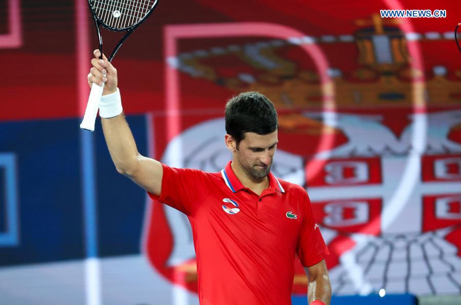 Germany's Alexander Zverev reacts during the ATP Cup group A match between Serbia and Germany in Melbourne, Australia, on Feb. 5, 2021. (Xinhua/Bai Xuefei)