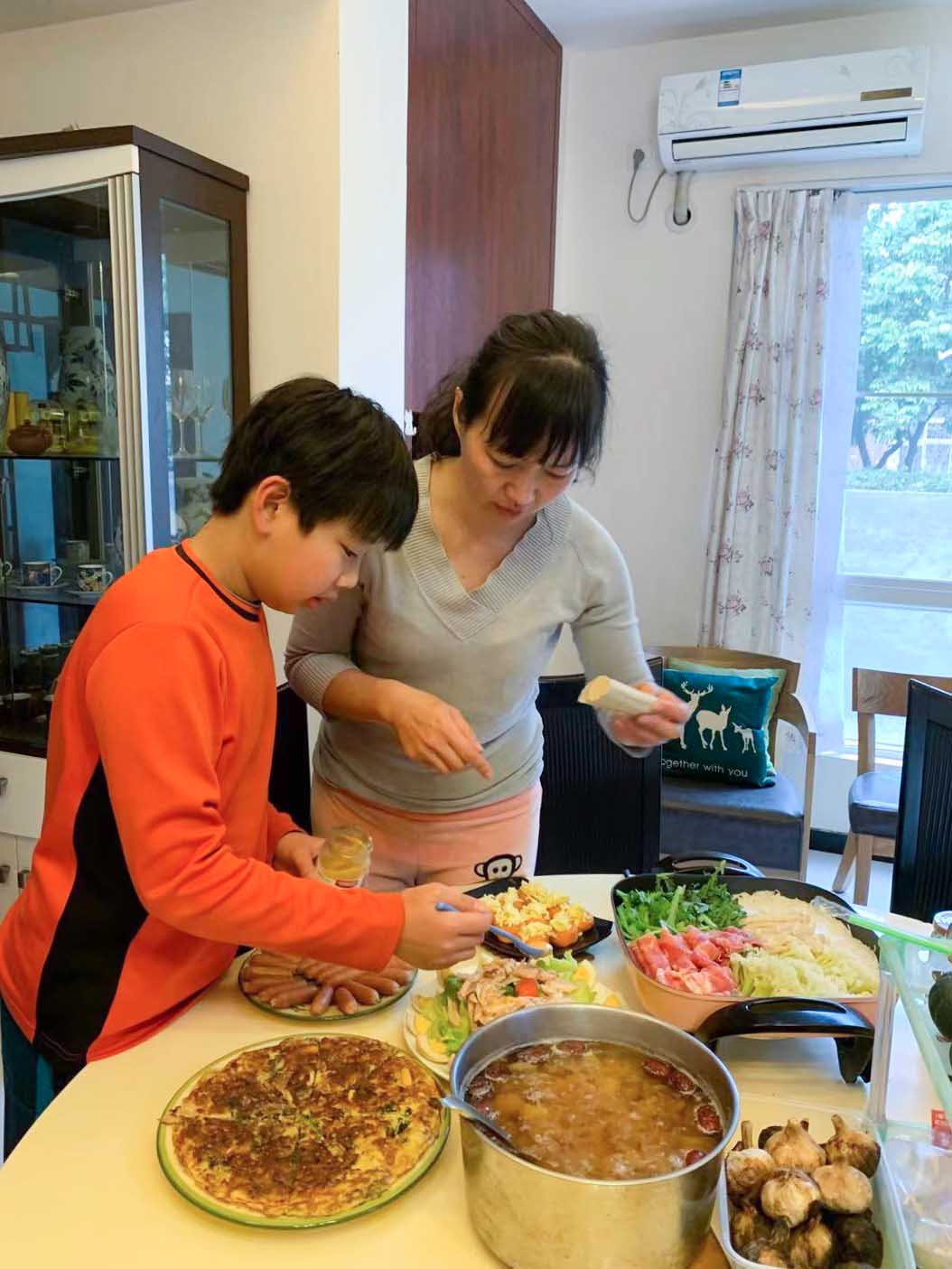Luo Shuhui and her son from Taiwan’s Taizhong cook hometown dishes in Fuzhou, southeast China’s Fujian province. It will be their first time in the past 20 years to spend the Spring Festival holiday in Fuzhou instead of in their hometown. (Photo/You Jieneng)