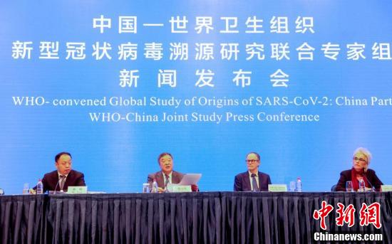 World Health Organization experts with their counterparts from China at a news conference on the origins of the coronavirus pandemic in Wuhan, Feb 9, 2021. (Chinanews.com/Photo)