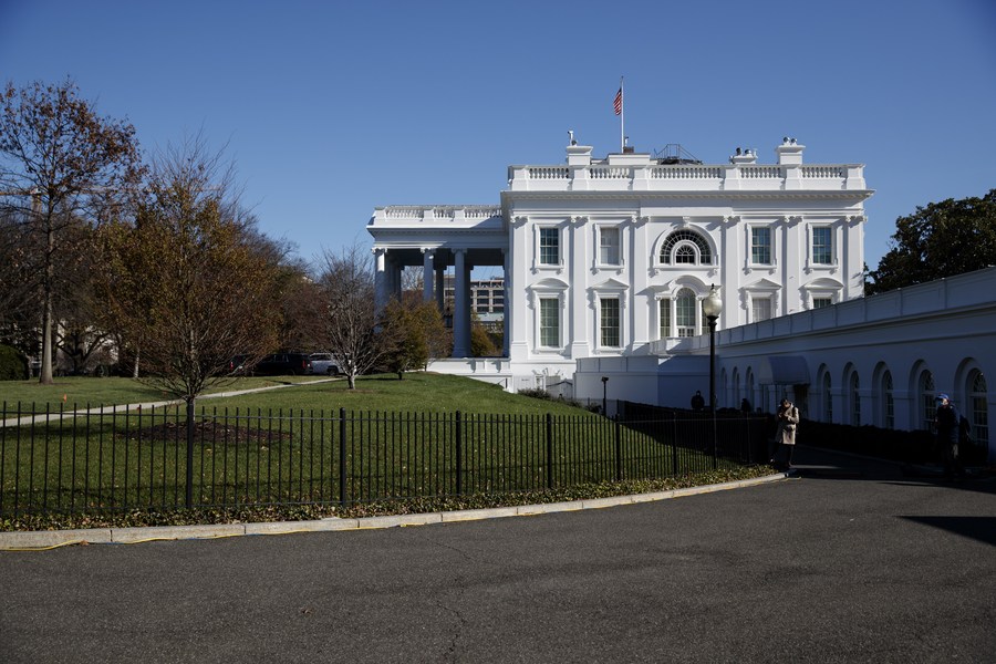 Photo taken on Nov. 23, 2020 shows the White House in Washington, D.C., the United States. (Photo by Ting Shen/Xinhua)