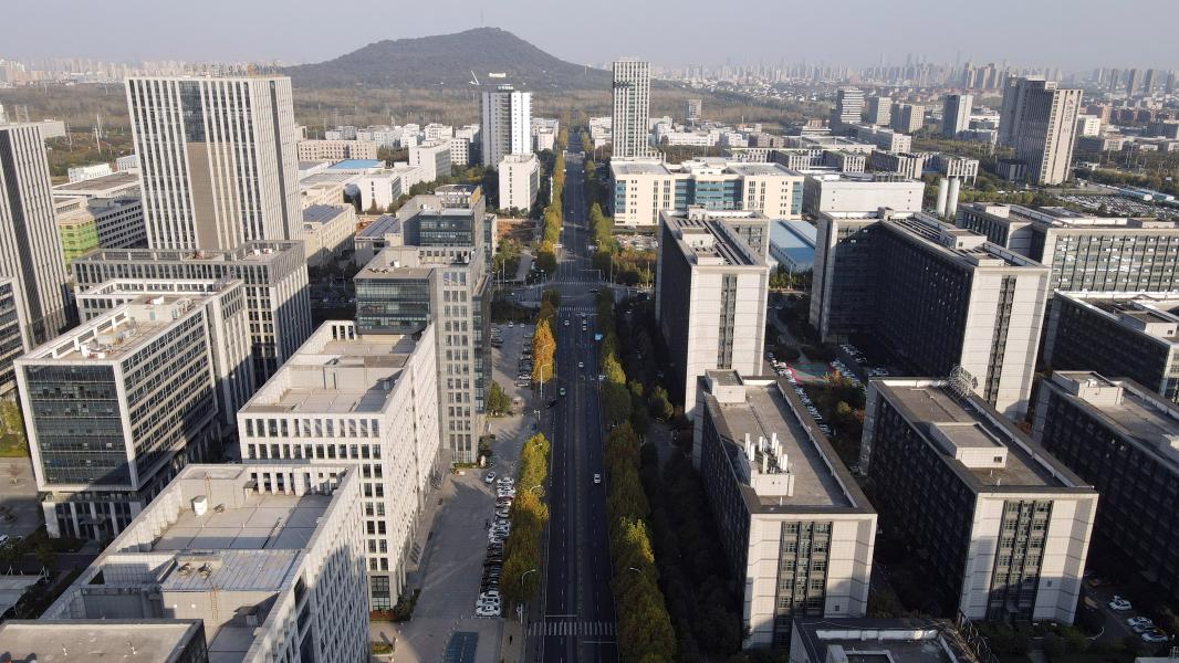 Aerial photo taken on Nov. 6, 2020 shows a view of Yunfei Road, which is dubbed as "quantum street" by locals in Hefei, east China's Anhui Province. (Xinhua/Zhou Mu)