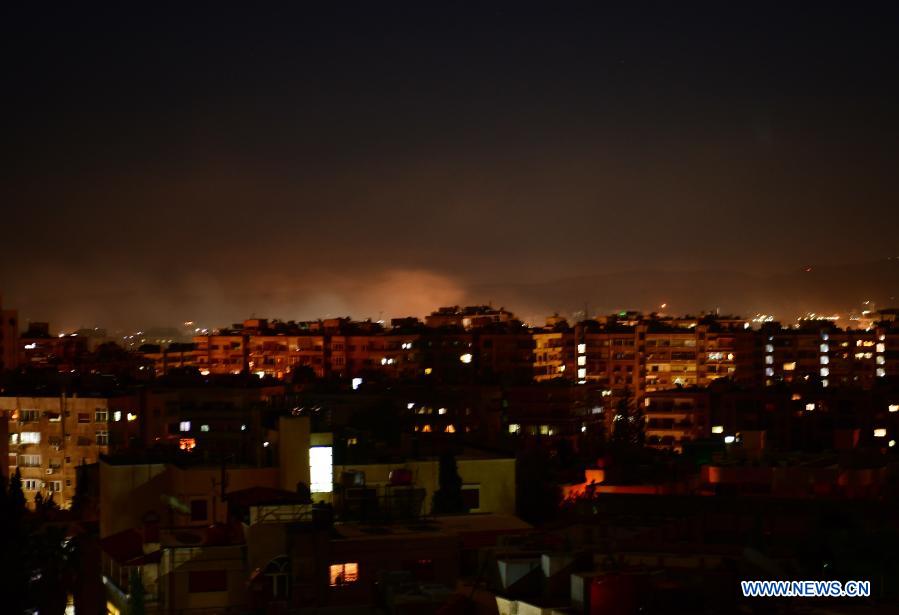 Smoke rises following an Israeli missile attack in Damascus, Syria, on Feb. 28, 2021. A fresh Israeli missile attack targeted positions in the vicinity of Damascus on Sunday night, state TV reported. (Photo by Ammar Safarjalani/Xinhua)