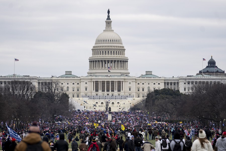File photo taken on Jan. 6, 2021 shows supporters of former U.S. President Donald Trump gathering in front of the U.S. Capitol building in Washington, D.C., the United States. (Xinhua/Liu Jie)