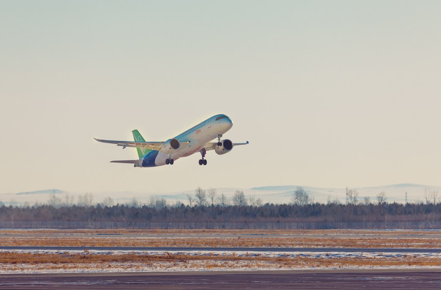 China's indigenously-developed C919 large passenger aircraft conducts cold-weather test flights in Hulunbuir, North China's Inner Mongolia autonomous region in January, 2021. [Photo/Xinhua]