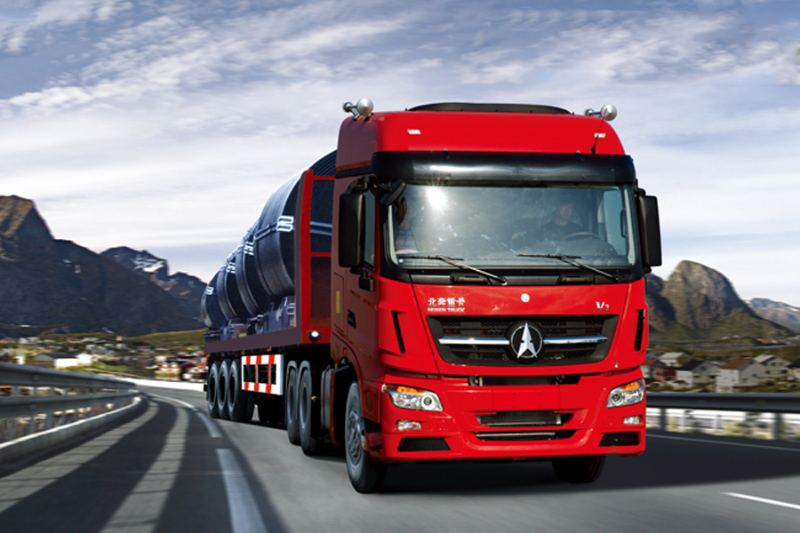 The truck, to be used as a street sweeper, rolled off the production line on Monday in Beiben's plant in the city of Baotou in north China's Inner Mongolia Autonomous Region.