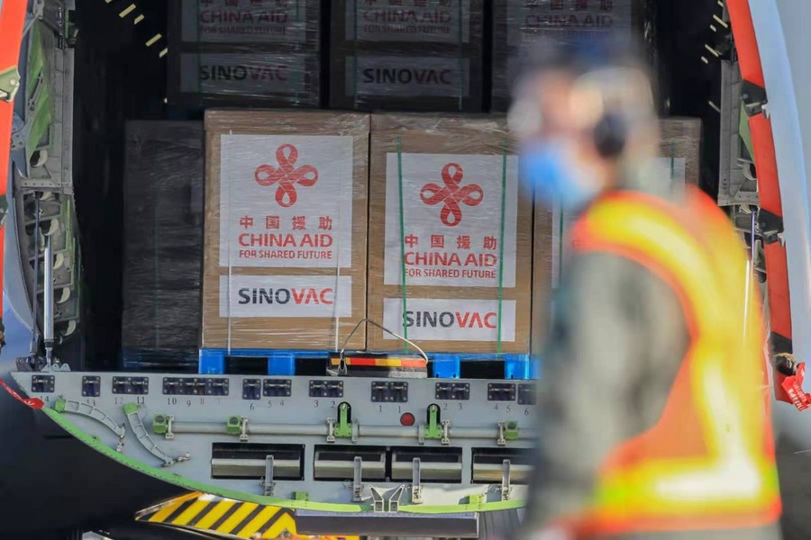 Vaccines donated by China are seen at a Philippine Air Force base in Manila, the Philippines on Feb. 28, 2021. (Xinhua/Rouelle Umali)