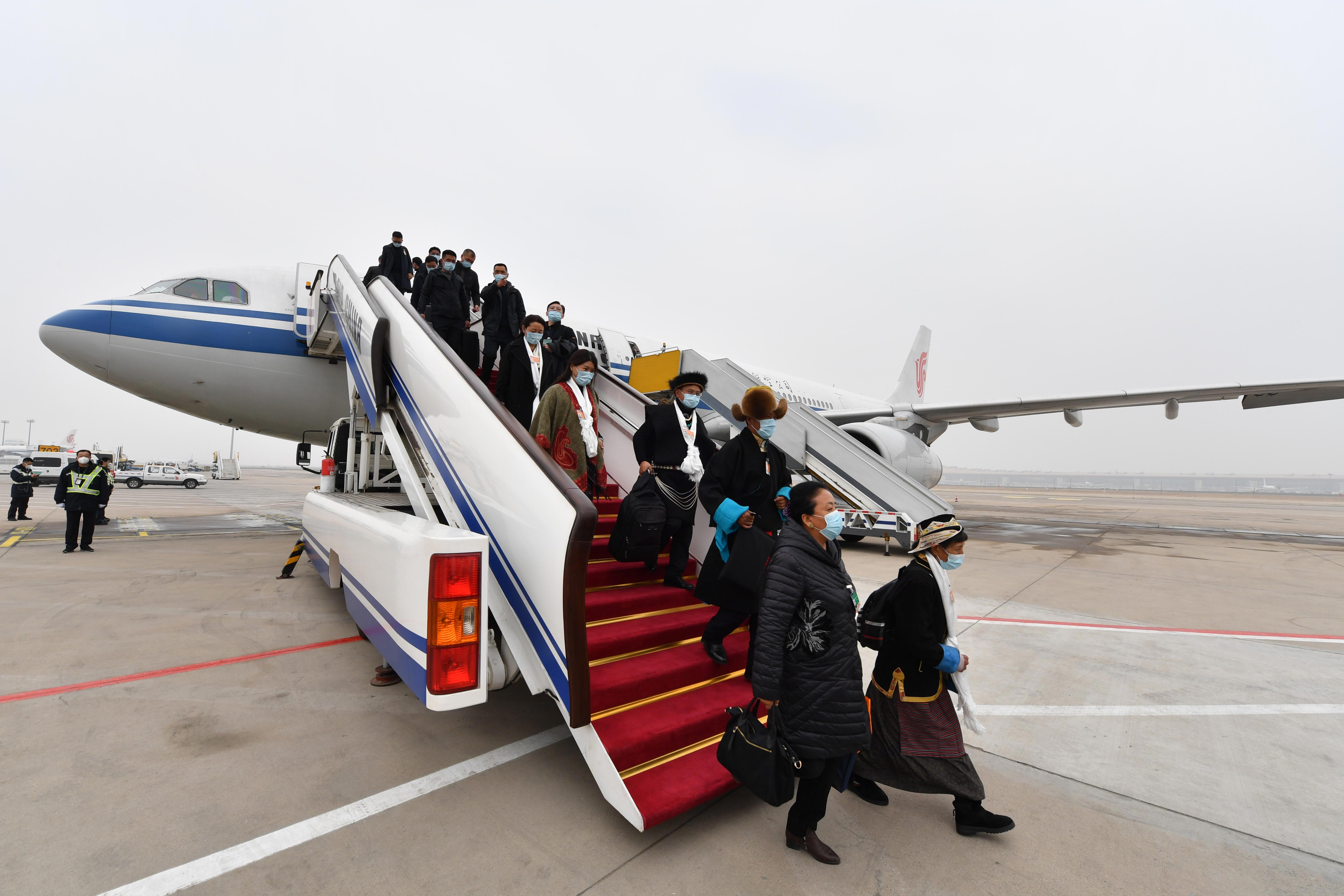 Lawmakers and political advisers from the Tibet autonomous region arrive in Beijing for the annual sessions of China's top legislature and top political advisory body, March 3, 2021. [Photo by TENTSEN SHINDEN/chinadaily.com.cn]