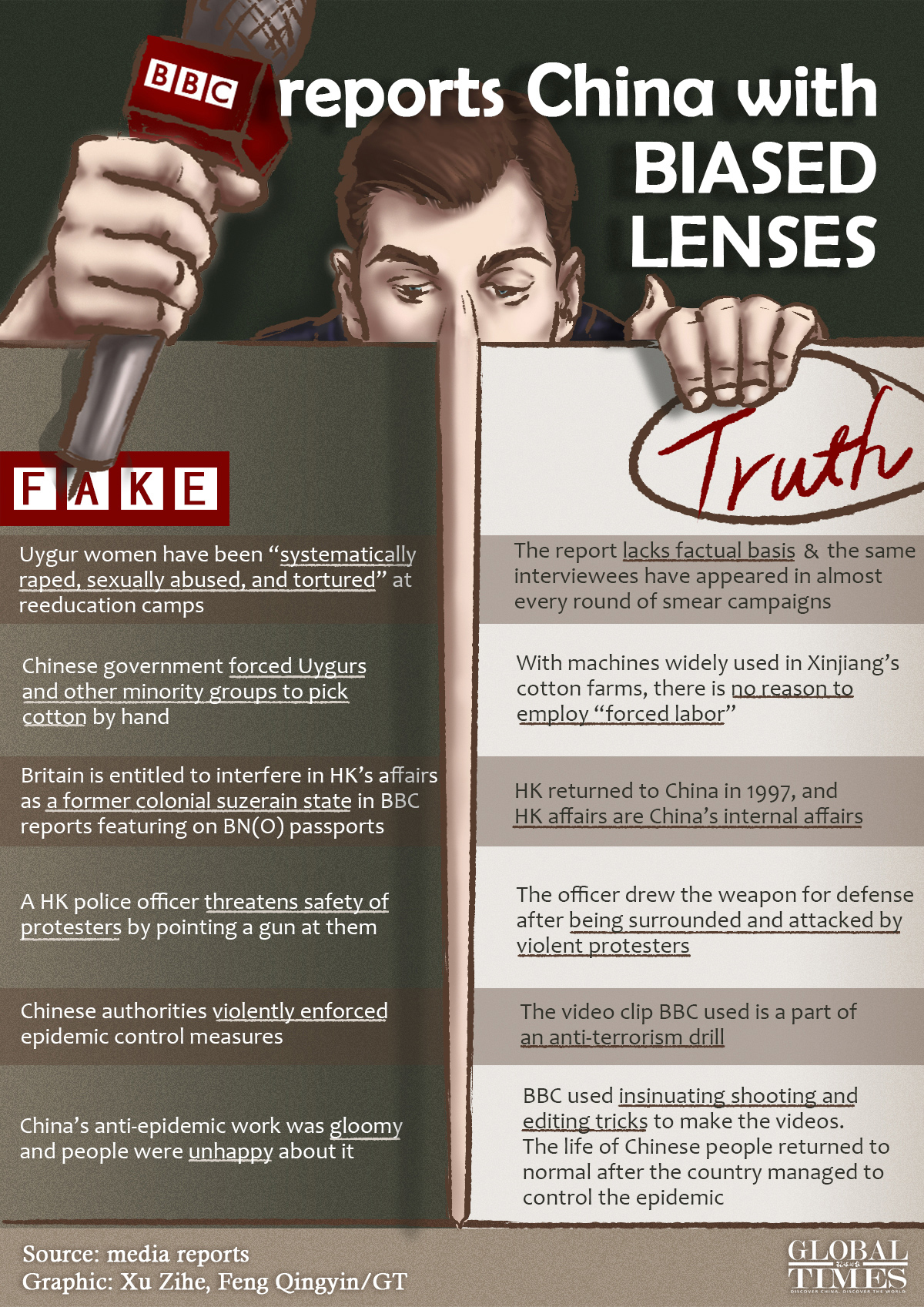 How does the BBC apply "results before evidence" principles when reporting on China? Graphic: Xu Zihe, Feng Qingyin/GT
