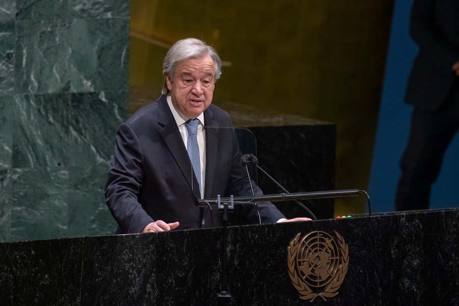 United Nations Secretary-General Antonio Guterres briefs the General Assembly on the Call to Action for Human Rights at the UN headquarters in New York on Feb. 24, 2021. (Eskinder Debebe/UN Photo/Handout via Xinhua)