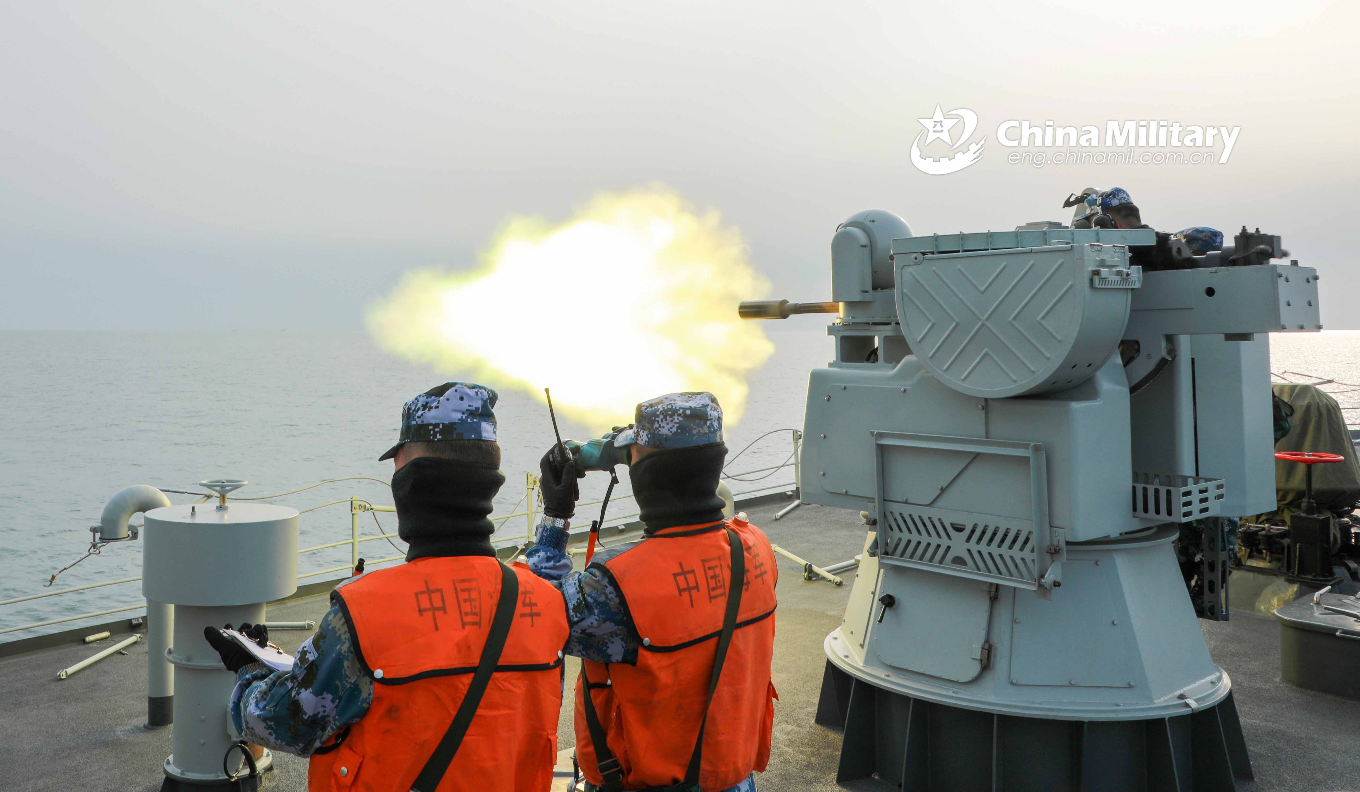 Three Type-081 mine countermeasures ships, led by the minesweeper Xuanwei (Hull 848), steam in astern formation at an undisclosed sea area during a maritime realistic training exercise on February 23, 2021. They are attached to a minesweeper group with the navy under the PLA Northern Theater Command. (eng.chinamil.com.cn/Photo by Yang Hao)