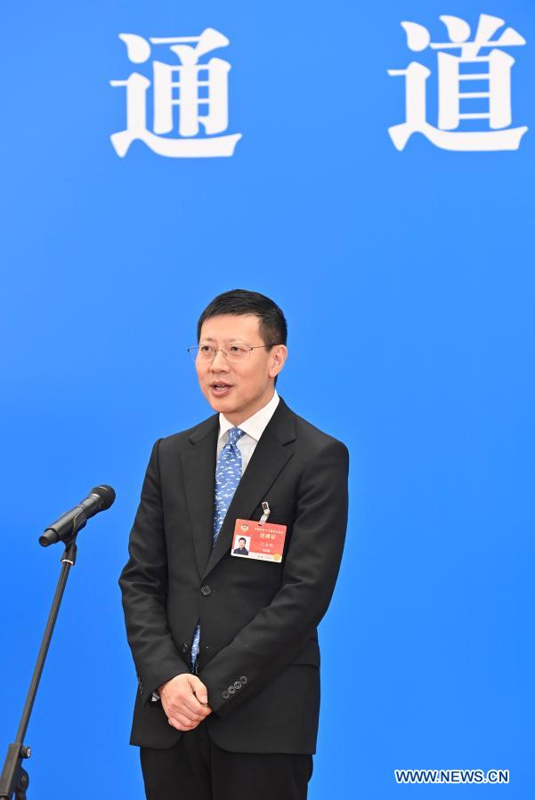 Shen Nanpeng, a member of the 13th National Committee of the Chinese People's Political Consultative Conference (CPPCC), gives an interview via video link ahead of the second plenary meeting of the fourth session of the 13th CPPCC National Committee at the Great Hall of the People in Beijing, capital of China, March 7, 2021. (Xinhua/Zhang Haofu)