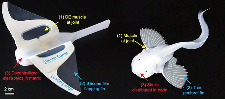 In summary, a machinery system fusing hard and soft components and is able to resist deep-sea hydrostatic pressure, as well as a new dielectric elastomer actuator that works in high-pressure and cold deep-sea environment, are the two major breakthroughs that make the robot a success.