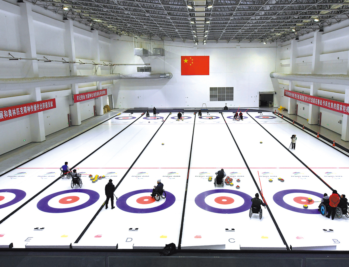 China's wheelchair curlers are preparing for the 2022 Winter Paralympics at a custom-built venue in Beijing's Yanqing district. [Photo/Xinhua]