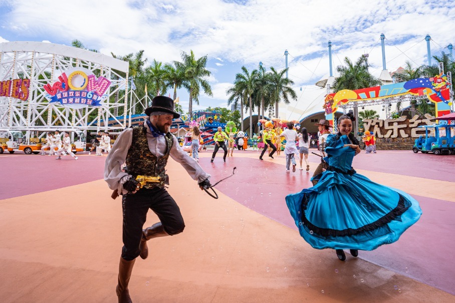 Foreigners perform at the Shenzhen Happy Valley theme park.