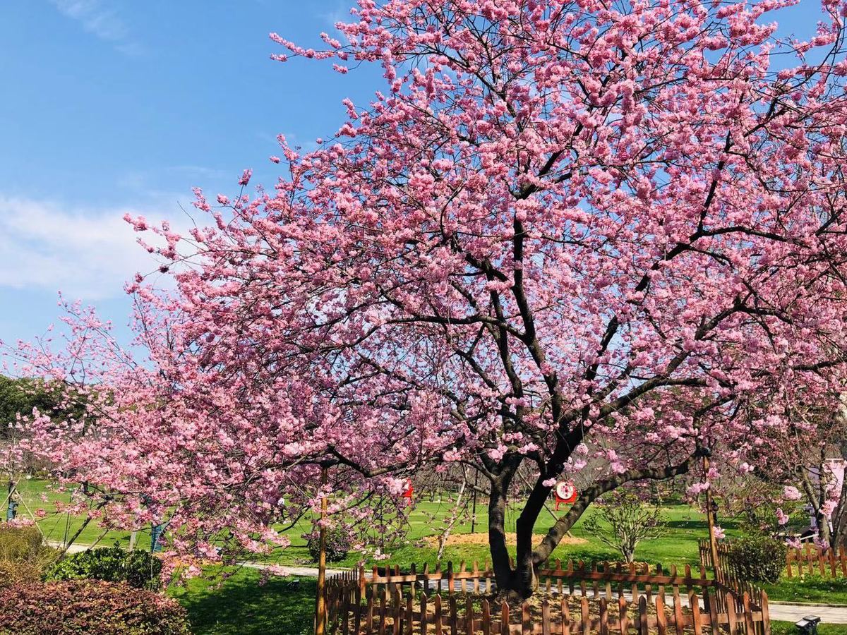 Covering more than 28 hectares, the Donghu Lake Park has more than 10,000 strains of cherry blossoms in 60 varieties. The beauty of the flowers and lake attracts visitors from around the country.