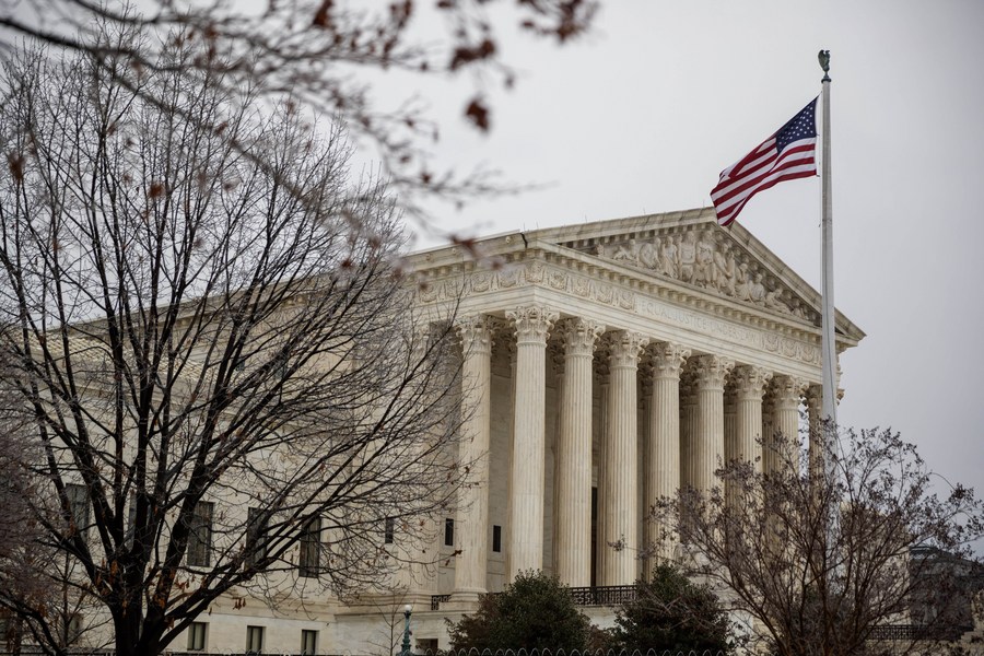 Photo taken on Feb. 22, 2021 shows the U.S. Supreme Court Building in Washington, D.C., the United States. (Photo by Ting Shen/Xinhua)