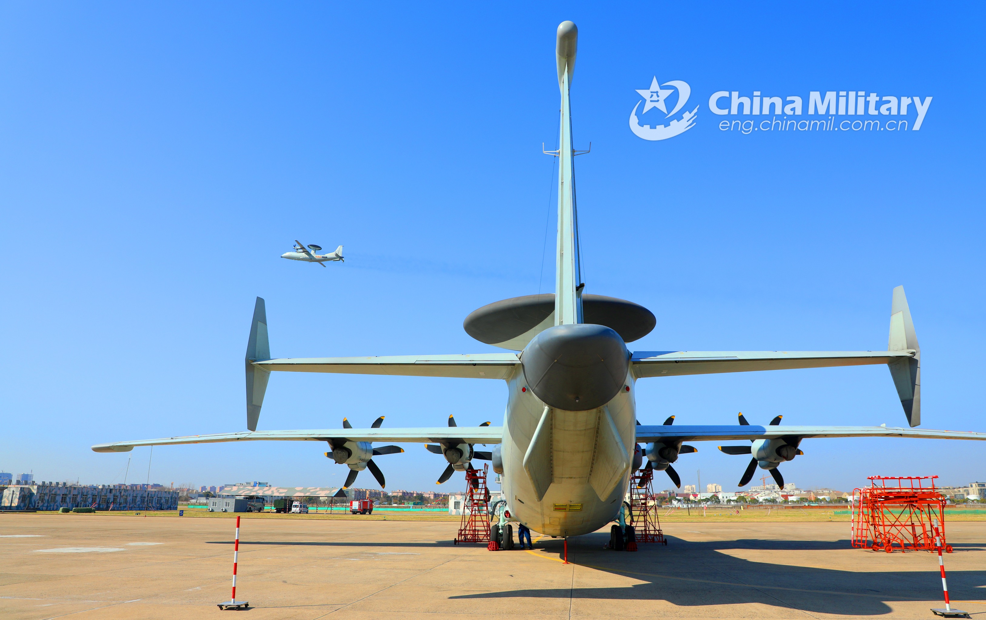 A KJ-500 airborne early warning (AEW) aircraft attached to a naval aviation division under the PLA Eastern Theater Command gets ready for a flight training exercise on subjects including reconnaissance and early warning, anti-submarine tactics, etc. on February 20, 2021. (eng.chinamil.com.cn/Photo by Li Hengjiang)