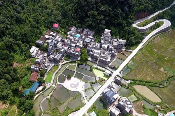 Bird’s eye view of a village in Huanjiang county. (Photo/Courtesy of the publicity department of the Communist Party of China Huanjiang county committee)