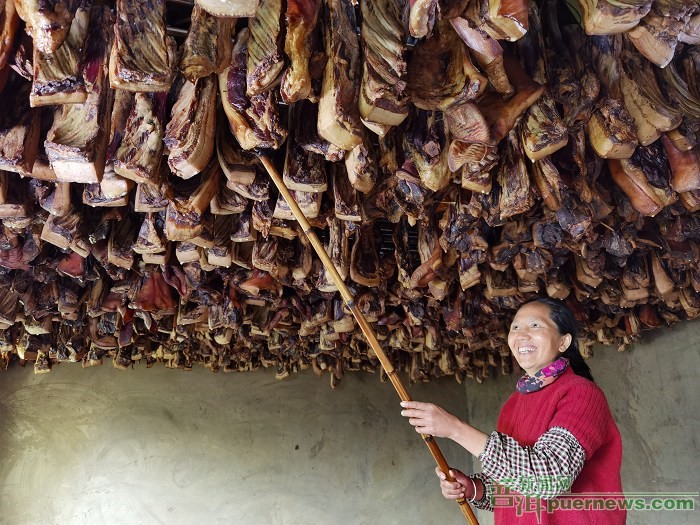 Zhao Yufang, a villager of Fudong Village, Fudong Township, Lancang Lahu Autonomous County, Pu’er City, is the local successful representative through pickling and selling bacon.