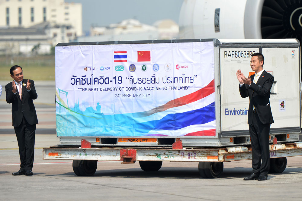 The first delivery of COVID-19 vaccine from China arrives in Bangkok, Thailand, on Feb 24. XINHUA