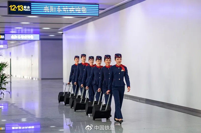 Photo shows train attendants from China State Railway Group Co., Ltd. (Photo from the Weibo account of China State Railway Group Co., Ltd.)