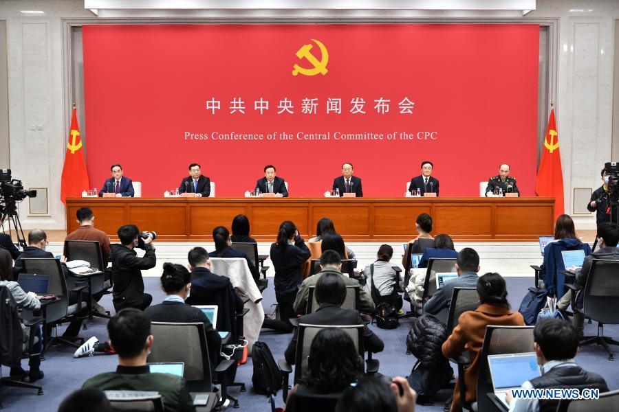 The Communist Party of China (CPC) Central Committee holds a press conference to shed light on the celebration activities for the 100th anniversary of the founding of the CPC in Beijing, capital of China, March 23, 2021. (Xinhua/Li Xin)