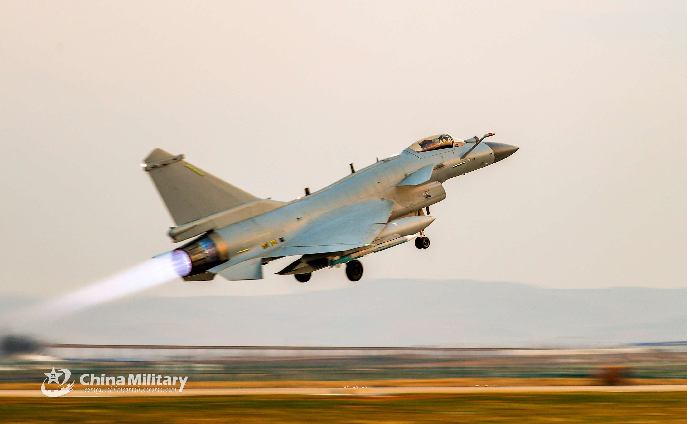 A fighter jet attached to an air force aviation brigade under the PLA Southern Theater Command takes off during a round-the-clock flight training exercise on March 4, 2021. (eng.chinamil.com.cn/Photo by Wang Guoyun)