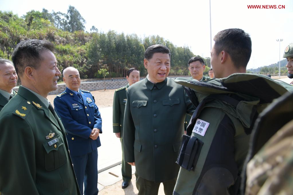 Chinese President Xi Jinping, also general secretary of the Communist Party of China Central Committee and chairman of the Central Military Commission, checks military training while inspecting a mobile corps of the People's Armed Police Force in Fujian Province, March 24, 2021. (Xinhua/Li Gang)