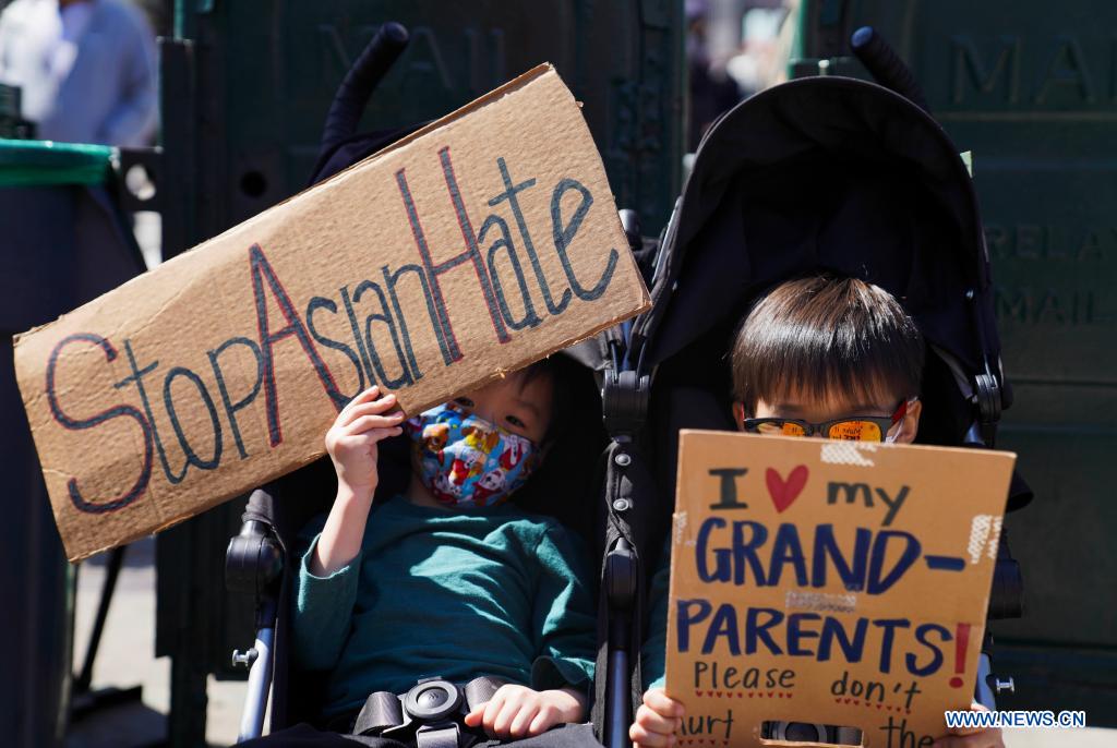 People attend a rally against racism and violence on Asian Americans in Flushing of New York, the United States, March 27, 2021. (Xinhua/Wang Ying)