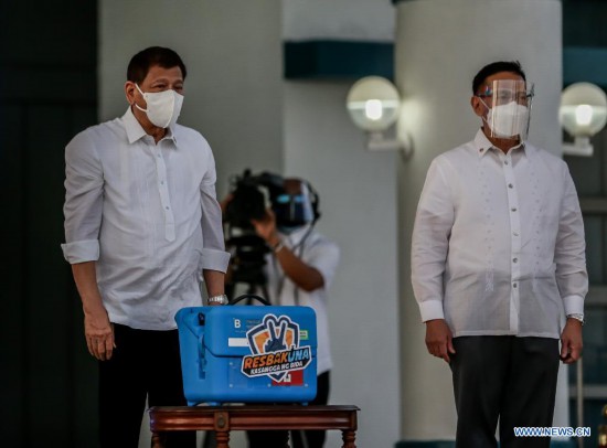 Philippine President Rodrigo Duterte welcomed the arrival of the CoronaVac vaccines alongside Chinese Ambassador to the Philippines, Huang Xilian, at an air force base in the capital Manila.