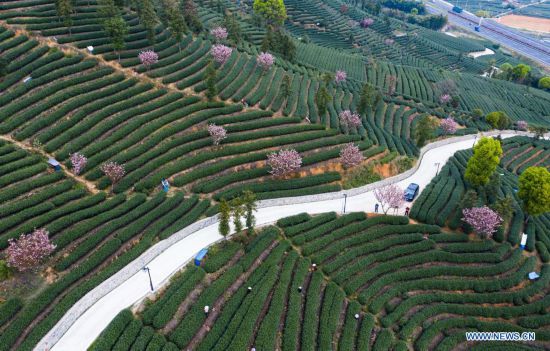 Cherry blossoms seen in tea garden in Hangzhou (2)