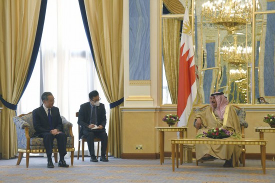 Bahrain's King Hamad bin Isa Al Khalifa (R) meets with visiting Chinese State Councilor and Foreign Minister Wang Yi (L) in Manama, Bahrain, March 29, 2021. (Xinhua/Tu Yifan)