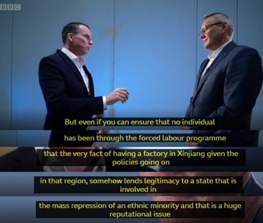 Screenshot of Sudworth's interview with Stephan Wollenstein, CEO of Volkswagen Group China, during which he raised biased questions.