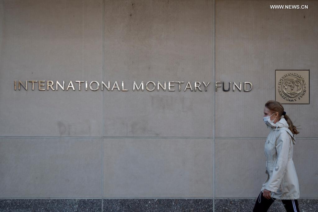 A woman walks past the International Monetary Fund (IMF) headquarters in Washington, D.C., the United States, March 30, 2021. The global economy is in a multi-speed recovery increasingly powered by China and the United States, the world's two largest economies, IMF Managing Director Kristalina Georgieva said on Tuesday. (Photo by Ting Shen/Xinhua)