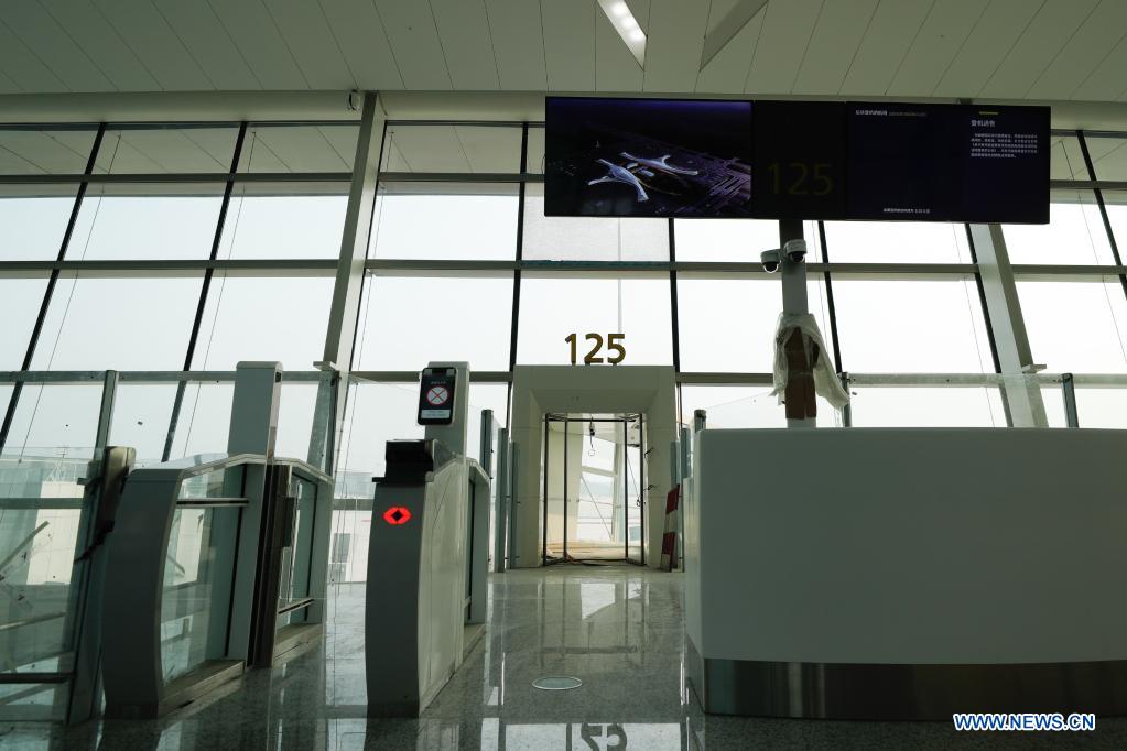 Photo taken on March 30, 2021 shows the self-service boarding gate of the terminal 1 of Chengdu Tianfu International Airport in Chengdu, southwest China's Sichuan Province. The construction of terminal area of Chengdu Tianfu International Airport was completed on Tuesday. (Xinhua/Liu Mengqi)