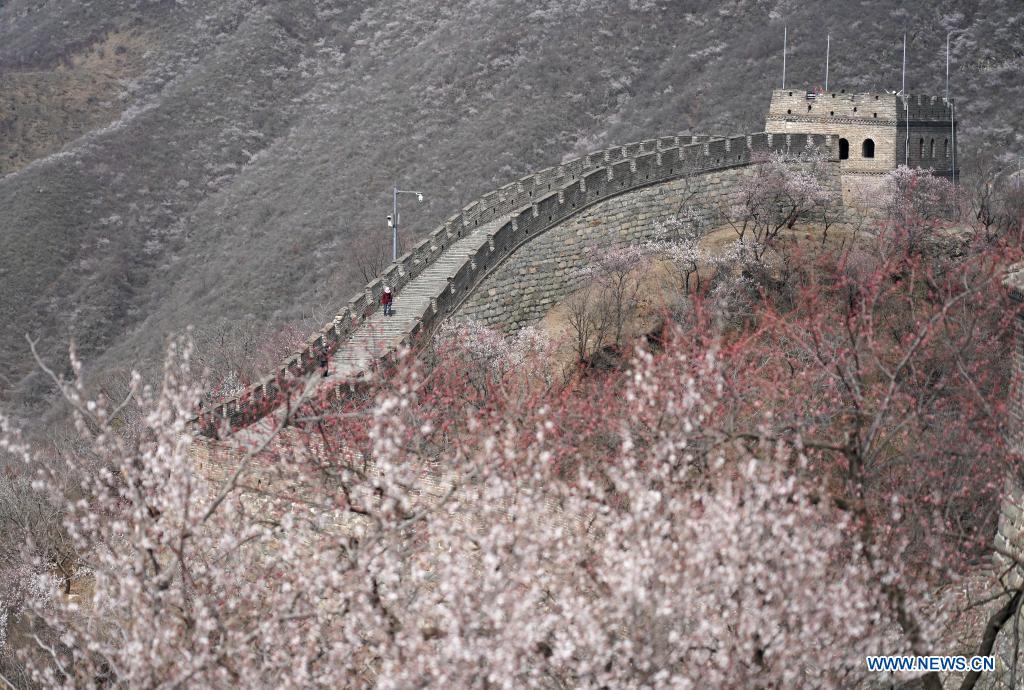 Photo taken on March 31, 2021 shows the spring scenery of the Mutianyu Great Wall in Beijing, capital of China. (Xinhua/Zhang Chenlin)