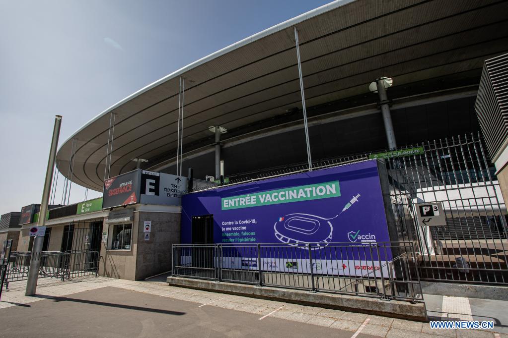 A sign of a new COVID-19 vaccination center is seen in Saint-Denis, France, on March 31, 2021. Starting from mid-April people over 60 in France will be able to get vaccinated, from May 15 the vaccination will be open to people aged between 50 and 60 and from mid-June the age limit will be lifted, said French President Emmanuel Macron on Wednesday. (Photo by Aurelien Morissard/Xinhua)