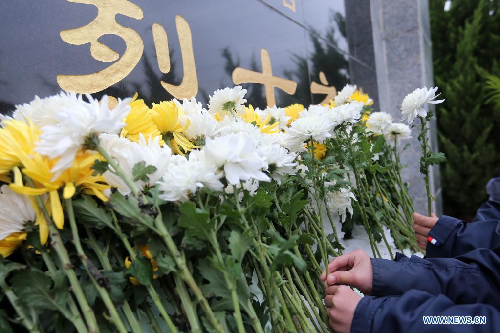 Students offer flowers at a cemetery for martyrs in Huaibei, east China's Anhui Province, April 1, 2021. The Tomb-sweeping Day, also known as Qingming Festival, which falls on April 4 this year, is a Chinese festival when people pay tribute to the dead and worship their ancestors by visiting tombs and making offerings. (Photo by Wan Shanchao/Xinhua)