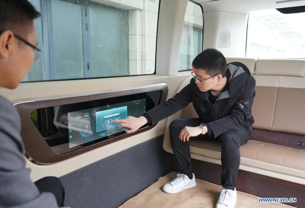 A staff member of Xiongan digital transportation lab manipulates an unmanned vehicle in Xiongan New Area, north China's Hebei Province, March 26, 2021. The Xiongan digital transportation lab is committed to digital transportation research to boost smart city development. (Xinhua/Jin Haoyuan)