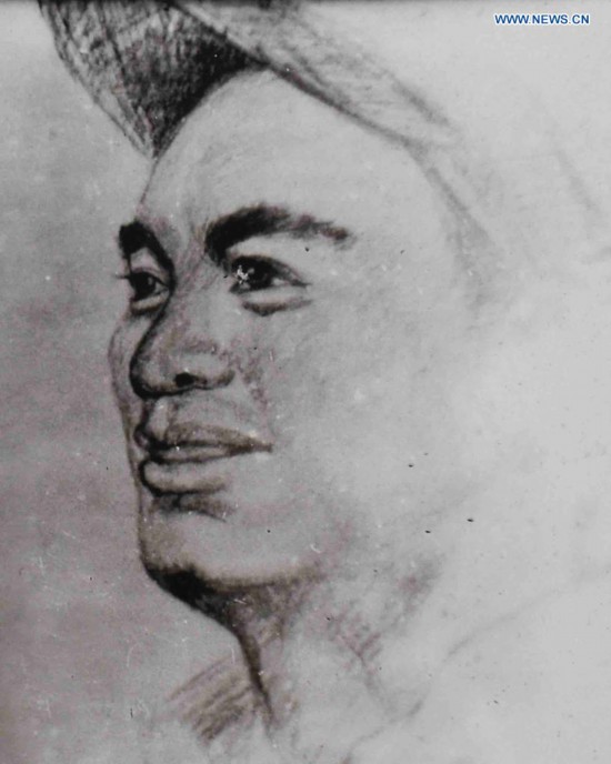Photo taken on August 14, 2020 shows a portrait of Chen Zigang. On the day, the descendants of Chen Zigang, a Red Army martyr buried in the Red Army Martyrs Cemetery in Sichuan-Shaanxi Revolutionary Base, came to the cemetery thousands of miles away from their hometown Shangcheng County in central China's Henan Province to pay homage to their ancestor. In 2018, they searched online and learned that Chen might be buried in the Red Army Martyrs cemetery. The information was finally confirmed through various efforts. Chen Zigang was born in 1910 in Shangcheng and died in a battle as a Red Army commander in 1933. When he left home, his son Chen Jiasheng was less than one year old. Now, Chen Jiasheng was 93 years old. He could only ask his sons and daughter-in-law to go to the cemetery to pay homage as the Tomb-sweeping Day approached. The Red Army Martyr Cemetery of Sichuan-Shaanxi Revolutionary Base, located in Wangping Village of Tongjiang County of southwest China's Sichuan Province, is the largest Red Army martyr cemetray in China, with 25,048 Red Army martyrs buried here. (Xinhua)