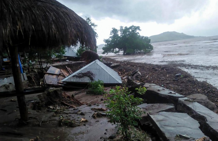 Photo taken on April 4, 2021 shows the damage of flash flood and landslide in East Nusa Tenggara, Indonesia. (BNPB/Handout via Xinhua)