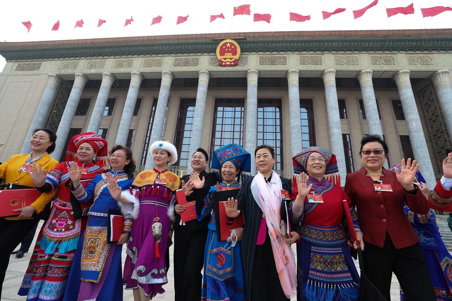 Deputies to the 13th National People's Congress (NPC) leave the Great Hall of the People after the closing meeting of the fourth session of the 13th NPC in Beijing, capital of China, March 11, 2021. (Xinhua/Cao Can)