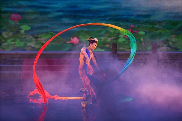 Flower Rains along the Silk Road is staged at Dunhuang Grand Theater on Thursday. [Photo by Wang Binyin/provided to chinadaily.com.cn]